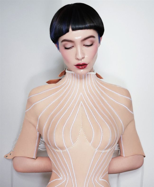 An elevated juxtaposition - timeless but futuristic hairstyles adorn elegant cyborgs, that are unsettlingly beautiful