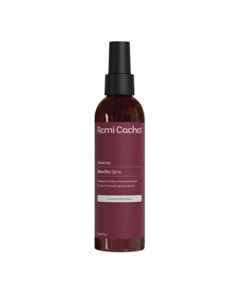 Remi Cachet’s Hairarchy Blow Dry Spray locks out environmental moisture for weatherproof, frizz-free hair, with heat protection.