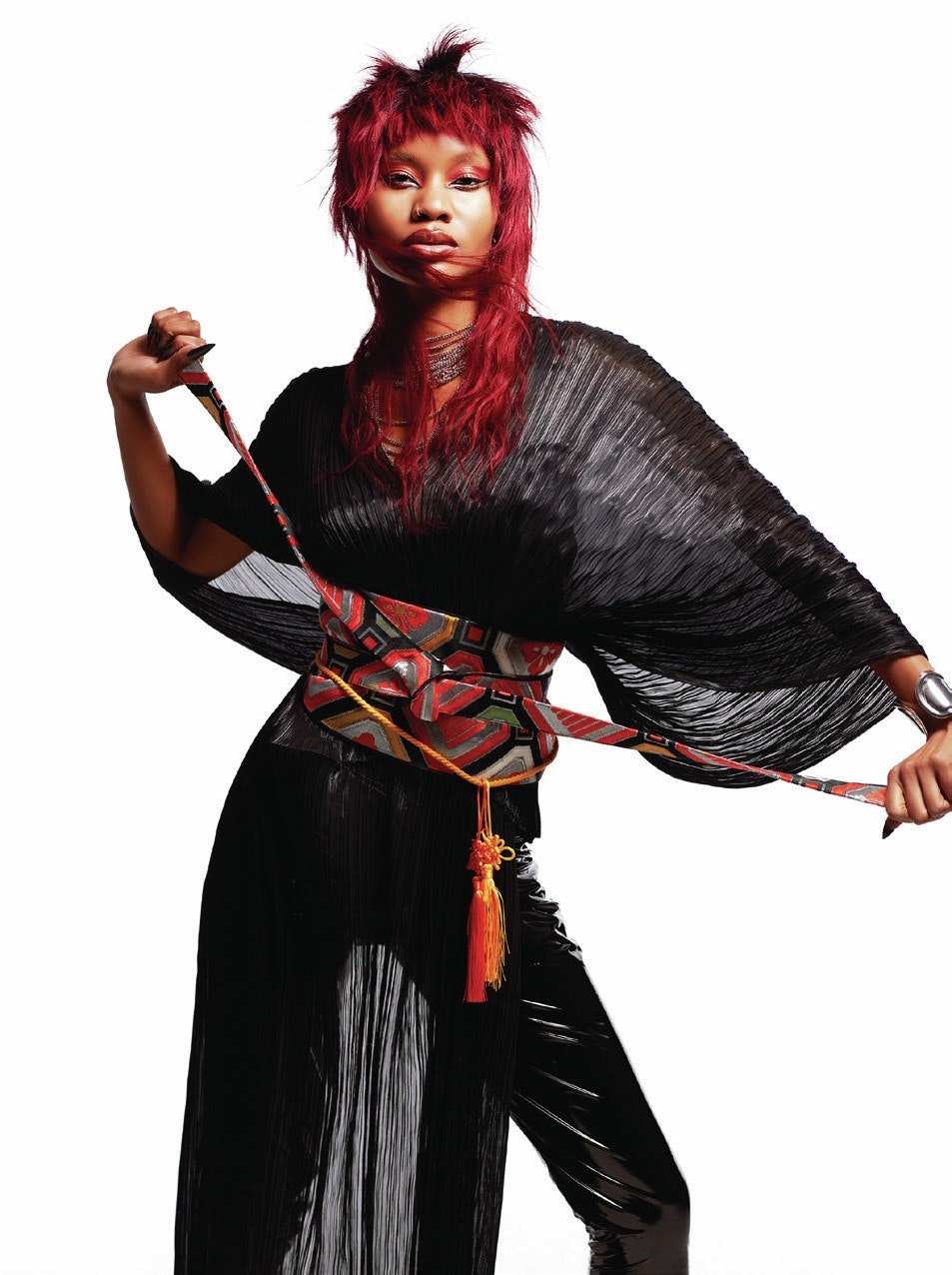 My overwhelming memory of the shoot day was loving it, there’s absolutely nothing better than having our vision come to life! All the models brought a brilliant vibe to set and the magic happened. We both love the drama and colour of this shoot, the fierce energy with beautiful hair – it’s just everything we hoped it would be!