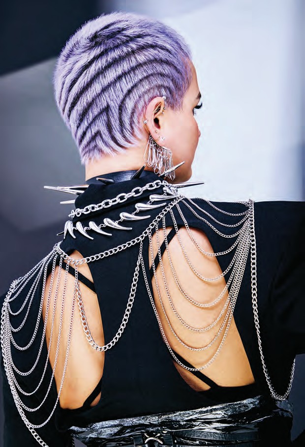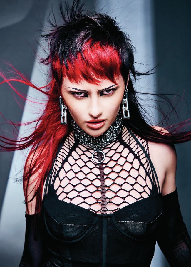 Merging avant-garde styling and daring hair with bold shapes and vivid hues for a modern vamp