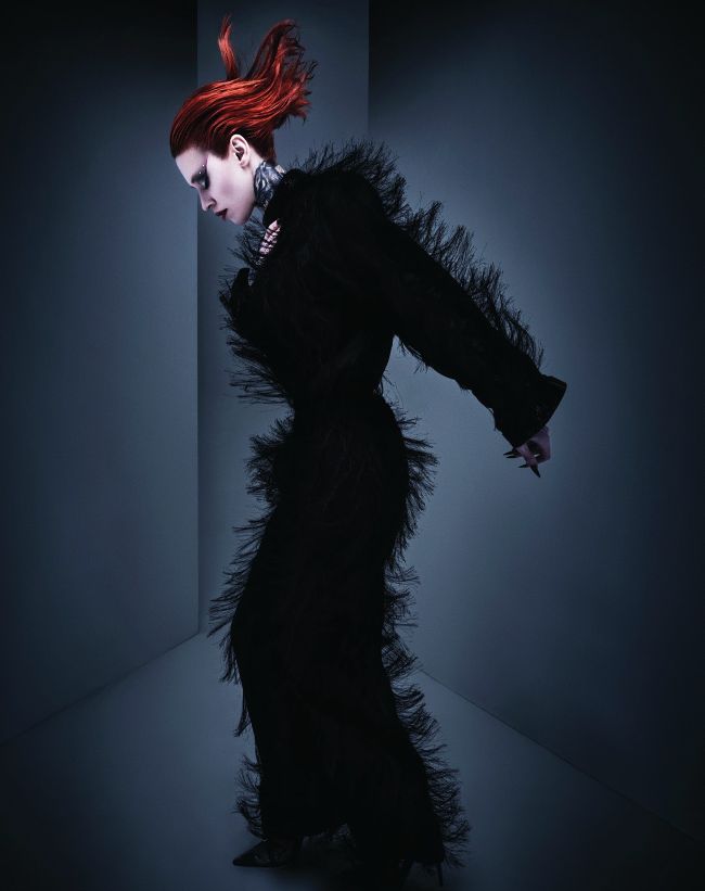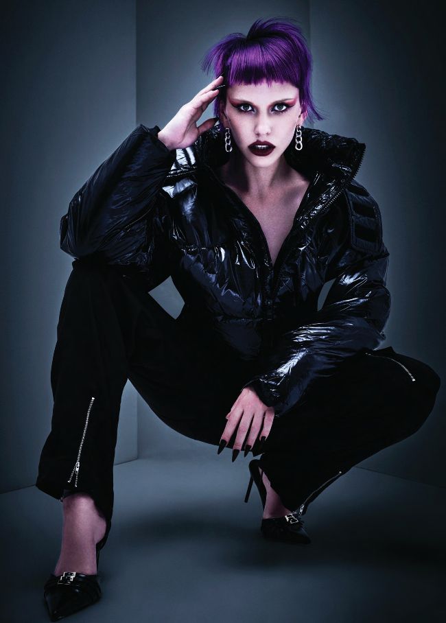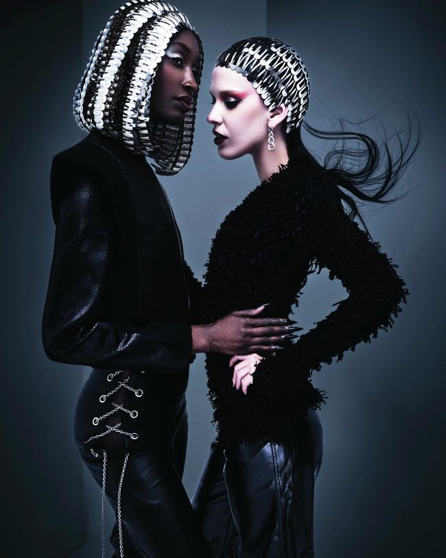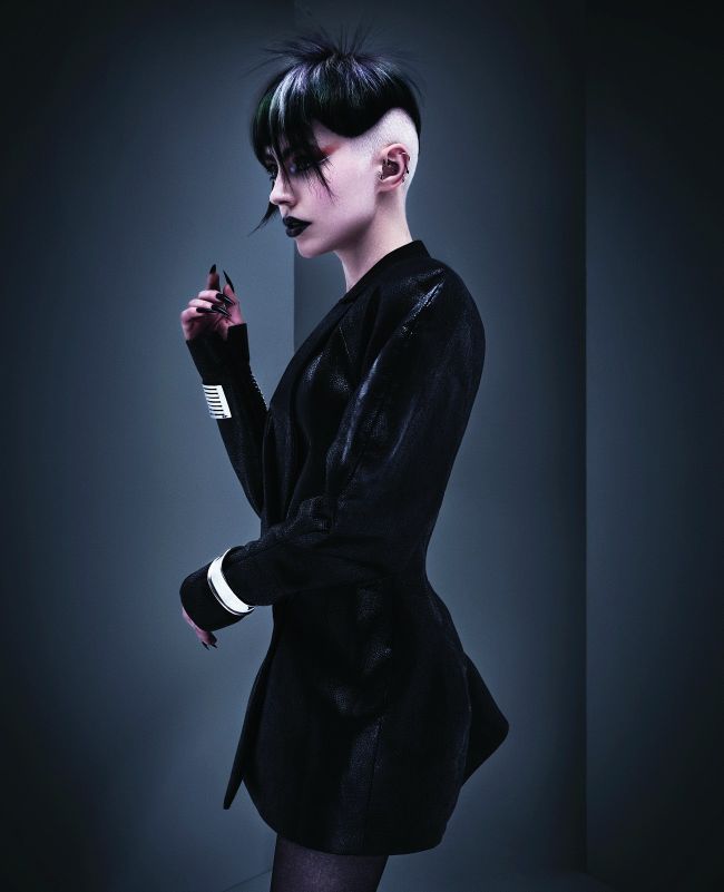 Merging avant-garde styling and daring hair with bold shapes and vivid hues for a modern vamp
