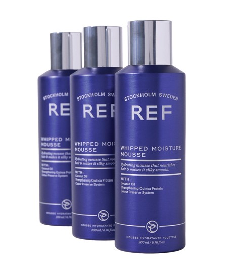 With coconut oil, quinoa protein and glycerin the REF Moisture Mousse features a light, whipped texture and delivers intense moisture and nourishment for a soft and airy finish and keeps hair feeling feather light.