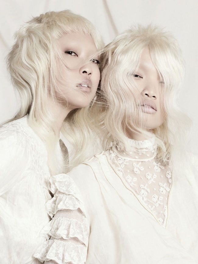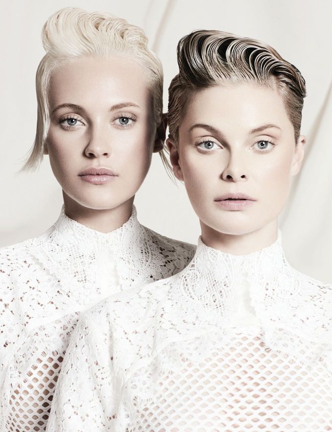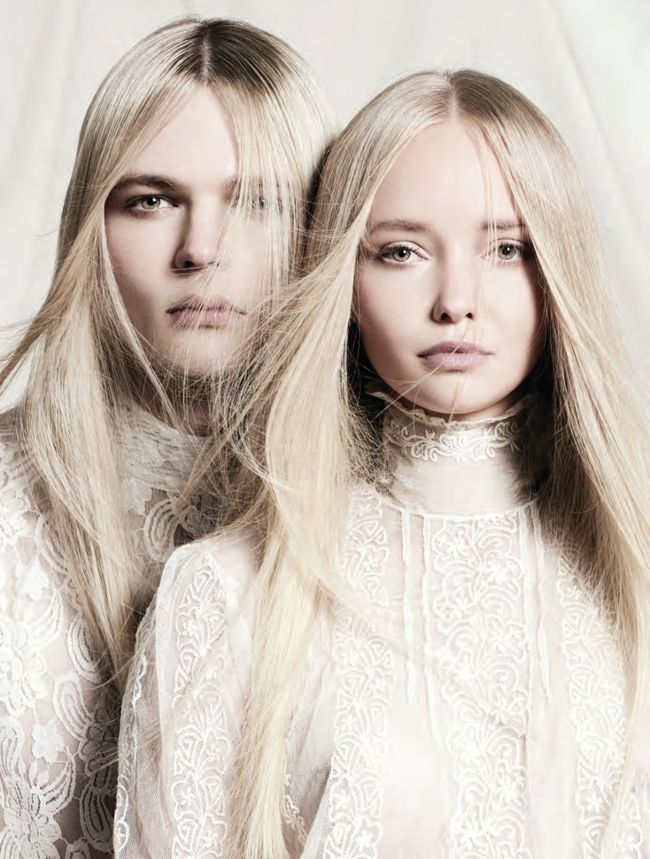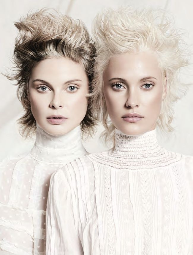 “Echoes is a visual exploration of duality, symmetry, and subtle rebellion. Drawing inspiration from Edwardian elegance, the collection blends high collars, delicate lace, and ruffled textures with contemporary hair sculpting and cool-toned minimalism. Each pairing of models becomes a mirrored reflection – not identical, but rhythmically aligned.”