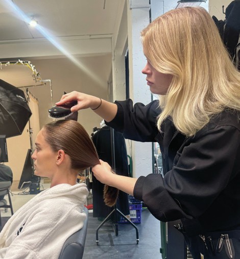 Meanwhile, her advice for any young hairdressers looking to step out from behind the chair into the fashion world, goes beyond assisting. “Seek out the people that are like you and assist – it’s helpful to work with people whose style you like. But it’s one thing to want to do something, and it’s another thing to be ready for it,” she says. “You never want to be booked for a job and not actually have the skills to do it. Doing test shoots allows you to put stuff onto your Instagram or your portfolio where you can show the person you want to assist that you can do hair. It’s not about your style or taste, it’s about, can you do a good blow-dry? Can you do a sleek ponytail? If you can show that, then you’re more likely to get booked on assisting jobs.”