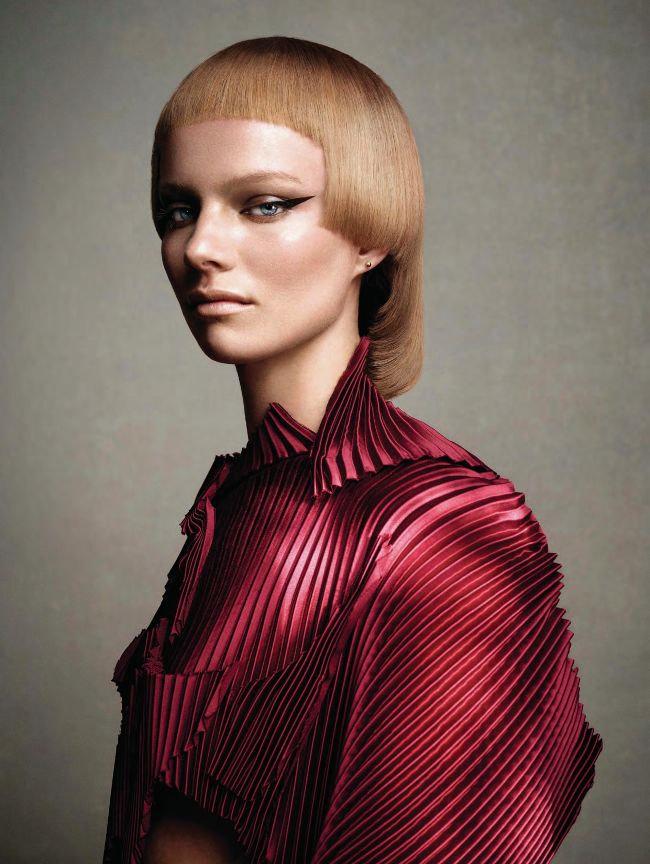 “I wanted to celebrate confidence from a woman’s perspective. I imagined each model as the distilled qualities of female empowerment, ambassadors of an elemental and commanding feminine Presence. This collection is called Parousia (the Greek word for Presence). Each look was used as a focal point to display core hairdressing techniques, to emphasise the strength of skill and how it is embodied by the models.”
