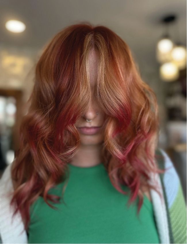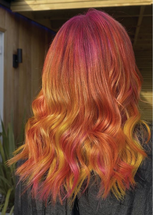 When I created this look, I thought, ‘this is giving fruit punch’! I used a root melt into ribbons of colour to create the effect.
