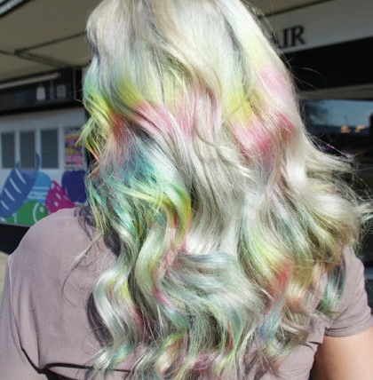 “I talk about two colouring techniques. Cloud Veiling – ultra fine, Manic Panic pastel overlays, to create a soft veil over Cloud Dancer blondes. Think of it like a filter, but one that’s not creating unmanageable hair. And then Cloud Feathering – feathering soft pastel tones into natural grey to create a seamless, airy blend.”