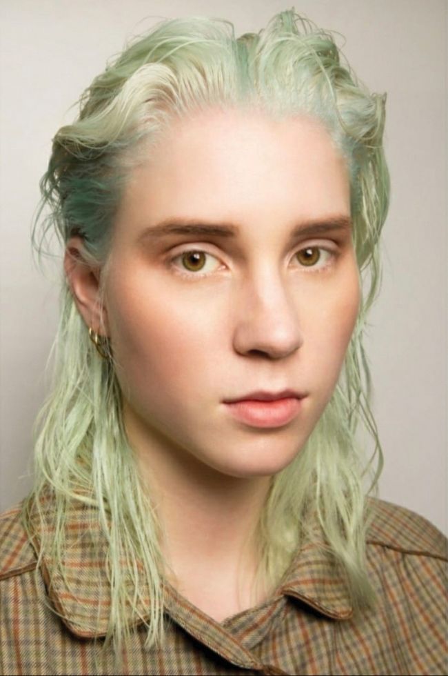 This jade green global toner used for an editorial shoot gives high fashion with a soft edge.