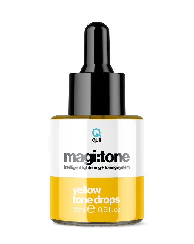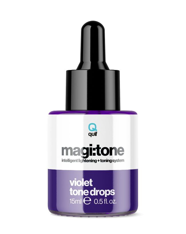 “THE BIGGEST DIFFERENCE QUIF MAGI:TONE HAS MADE TO MY BUSINESS IS GIVING ME TIME BACK. I’M NOT WAITING AROUND FOR TONERS TO PROCESS AND I’M NOT DOUBLE-PROCESSING THE HAIR, WHICH ALSO SAVES ME MONEY ON PRODUCT. MY ABSOLUTE FAVOURITE LOOKS TO CREATE ARE CHAMPAGNE BLONDES BY COMBINING THE VIOLET AND YELLOW DROPS TOGETHER. MY BIGGEST ADVICE TO ANYONE NEW TO QUIF MAGI:TONE WHEN CREATING BLONDES IS TO START WITH VIOLET AND ADD A LITTLE YELLOW SO YOU DON’T CREATE A TONE THAT’S TOO COOL – AND DON’T BE AFRAID TO GET CREATIVE.”