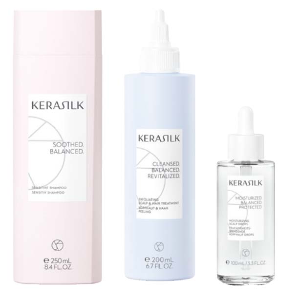 KERASILK’s new Scalp Care range features an Exfoliating Scalp & Hair Treatment with 2% AHA, a Sensitive Shampoo and Moisturizing Scalp Drops.