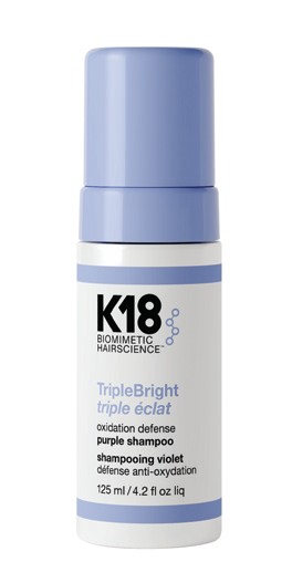 K18’s TripleBright Oxidation Defence Shampoo removes metals and minerals, neutralises, and defends against future brassiness.
