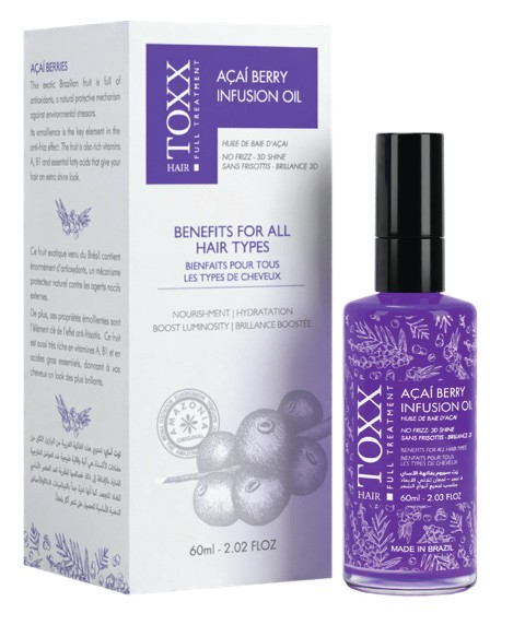 Rich in vitamins A, B1 and antioxidants, Açaí Berry Infusion Oil from Hair.TOXX helps replenish weakened fibre and rebuild softness.