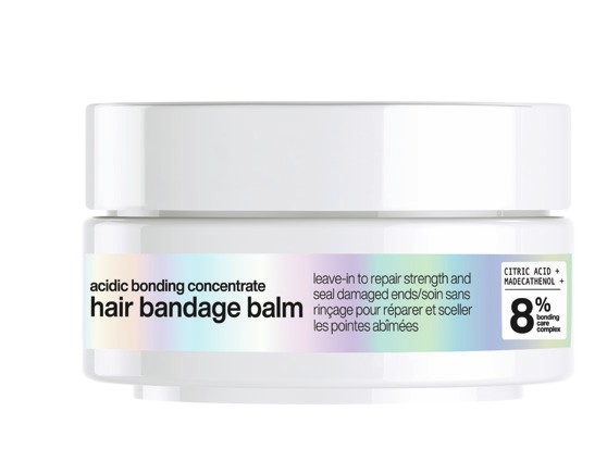 Redken’s Acidic Bonding Concentrate Hair Bandage Balm visibly seals split ends in one use, restoring strength and elasticity.