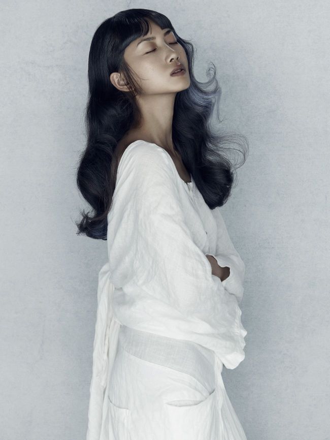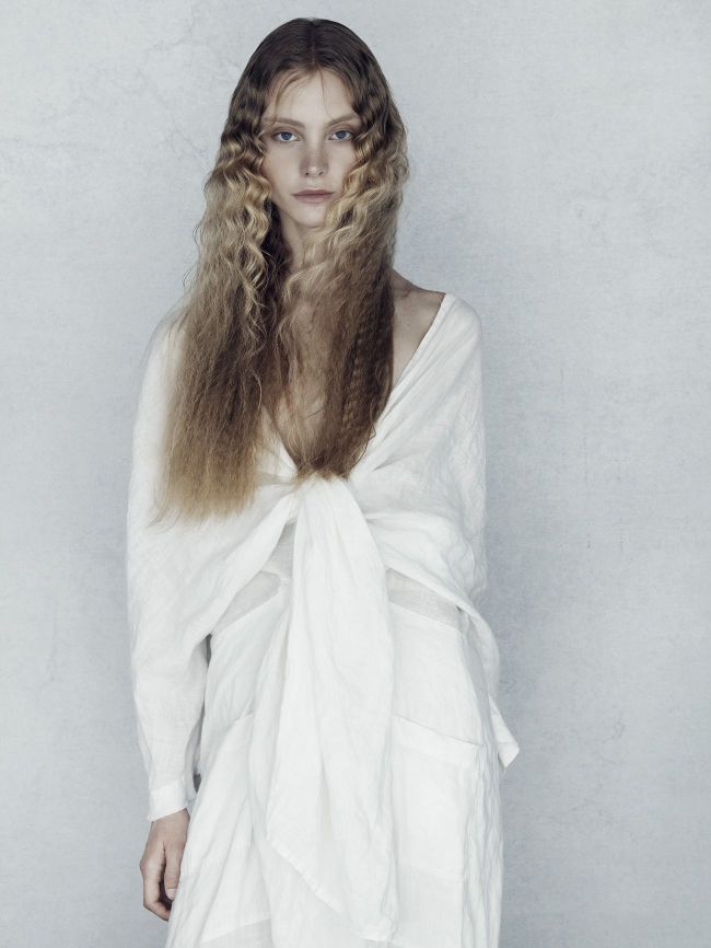 Collaborating with Jenny Hands has always been the most incredible experience because she captures what is in my brain! Her lighting and movement on set always inspires me as well as the choice of background and her trust in the concept. It’s a dream team. Choosing models that had a simple beauty meant we had a blank canvas to work on and it allowed the hair on the day to just be – not overworking anything. The shoot day had an organic feel where it was about capturing a moment of natural beauty and effortless style. One linen dress was morphed to suit the model and emotion of each image without being overpowering, and the make-up emphasised each model’s natural beauty, while photography was muted and saturated so the finished look was like a painting. This collection is about all the elements working together and capturing simplicity at its best.